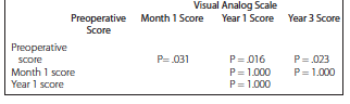 pain. The visual analog scale scores were assessed preoperatively and at 1