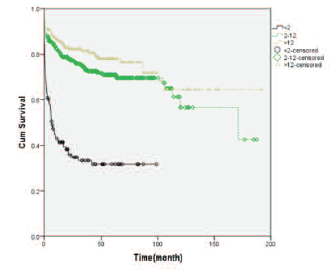 Survival probabilities were estimated by the Kaplan-Meier method, with significance determined with the log-rank test. Cox regression analysis was used to consider variables on survival function simultaneously. P < .05 was considered statistically significant. Statistical analysis was performed with SPSS software (SPSS: An IBM Company, version 21, IBM Corporation, Armonk, NY, USA).