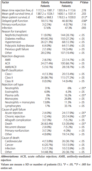 Table 3. Outcomes of Rejection and Multivariate Analysis of Rejection Risk Factors in Elderly Patients