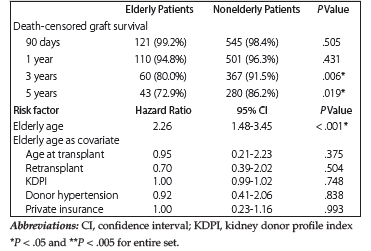 Table 4. Outcomes of Graft Survival and Multivariate Analysis of Graft Survival Risk Factors in Elderly Patients