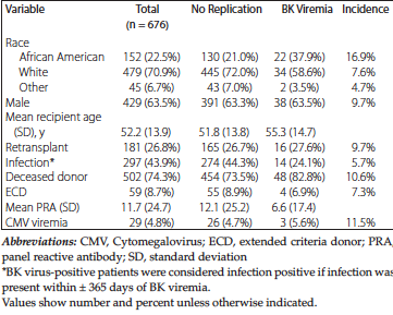 Table 1. Patient Demographics and Incidence of BK Viremia
