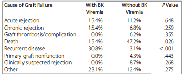 Table 5. Causes of Graft Failure in Patients With Versus Without BK Viremia