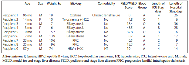 Results: During the pandemic, 38 kidney transplants with an average length of hospital stay of 8.1 days were performed. Mean serum creatinine values of recipients were 0.91, 0.86, and 0.74 mg/dL on postoperative days 7, 30, and 90, respectively. During the pandemic, 9 living donor liver transplants (1 adult, 8 pediatric) were performed with an average length of hospital stay of 17.1 days. Mean serum total bilirubin levels were 0.9, 0.5, and 0.4 mg/dL on postoperative days 7, 30, and 90, respectively. Mean serum aspartate aminotransferase levels were 38.1, 28.3, and 22.3 U/L on postoperative days 7, 30, and 90, respectively. All recipients and donors were successfully discharged. Only 1 liver recipient died (on day 55 after discharge as a result of oxalosis-induced heart failure).
