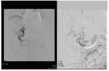 Figure 3. Digital Subtraction Angiography Followed by Coil Embolization of Fistulous Communication Between Hepatic Artery and Portal Vein
