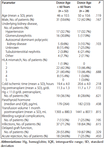 Table 1. Demographic, Clinical, and Laboratory Characteristics of Recipient Population (N = 80)