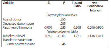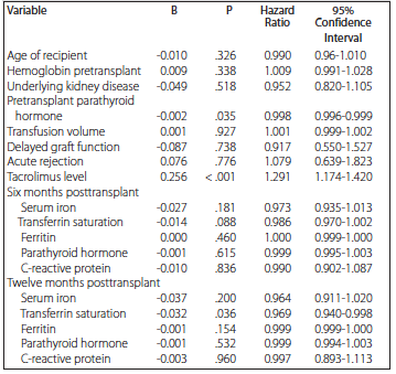Table 6. Multivariate Cox Regression Analysis for Posttransplant Anemia Recovery During 12-Month Follow-Up