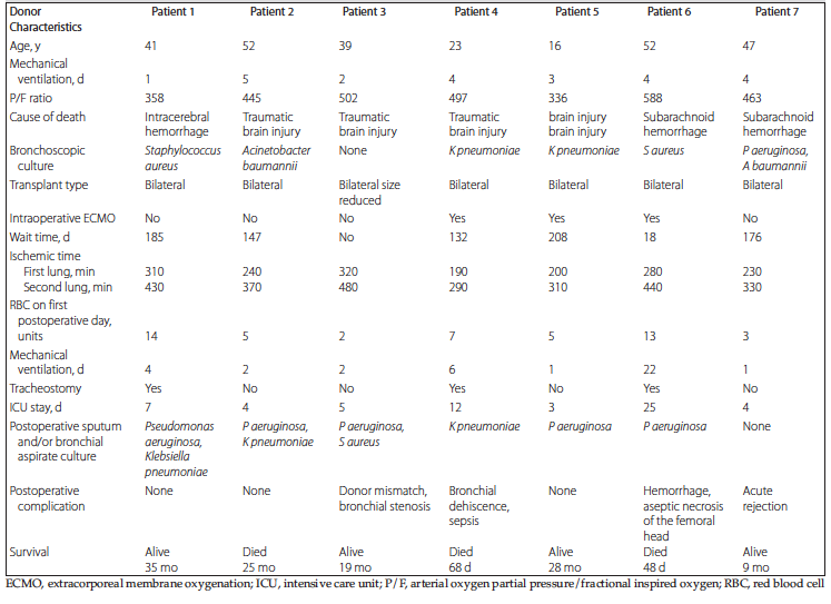 Table 3. Donor Data and Outcomes of Lung Transplant