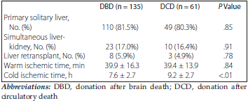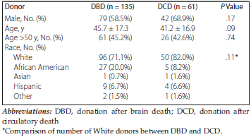 Table 3. Comparison of Donor Variables Among Donors After Brain Death and Donors After Circulatory Death