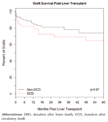 Figure 2. Graft Survival in Donation After Circulatory Death and Donation After Brain Death Liver Transplant