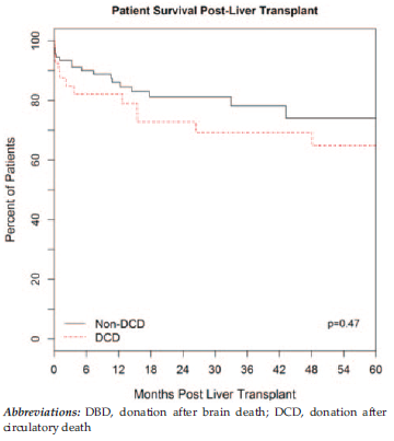 Figure 3. Patient Survival in Donation After Circulatory Death and Donation After Brain Death Liver Transplant