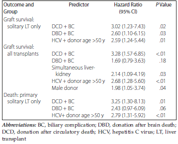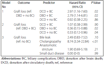 Table 6. Overall Biliary Complications as a Time-Dependent Predictor of Graft Loss