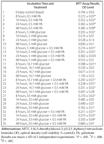 Table 1. Cell Viability Assay During Treatment With Glucose and Palmitate