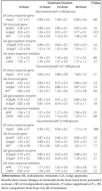 Table 2. Effect of Glucose Alone on INS-1E Rat Beta-Cell Golgi Apparatus Stress Markers