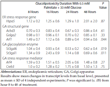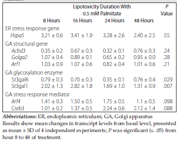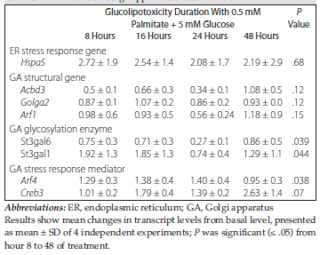 Table 3. Effect of Palmitate on INS-1E Rat Beta-Cell Golgi Apparatus Stress Markers