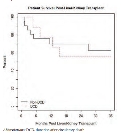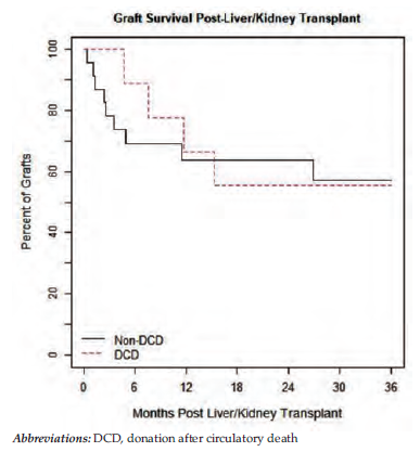 Although initial reports had described inferior outcomes following DCD LT, compared with LT using donation after brain death (DBD) grafts, primarily because of the increased incidence of biliary complications, more recent data have shown improved outcomes and comparable results from both single-center and registry analyses.2-6 Similarly, although studies comparing kidney transplant using DCD donors have shown an increase in delayed allograft function, reported long-term allograft and patient survival rates are similar to those of recipients of non-DCD kidneys.7,8