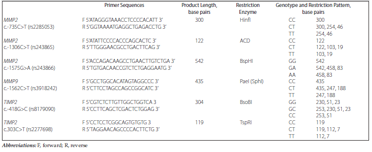 Table 1. Primer Sequences, Product Lengths, Restriction Enzymes, and Restriction Patterns of the Studied Polymorphisms