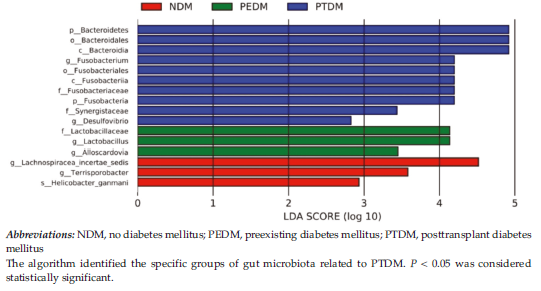 Figure 5. Linear Discriminant Analysis Effect Quantity Analysis of Gut Microbiota of Recipients in the PTDM Group Compared With NDM and PTDM Groups