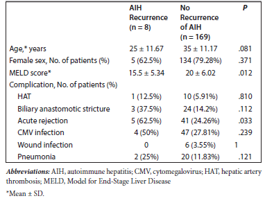 Conclusions: Liver transplant in patients with autoimmune hepatitis is safe and is associated with good outcomes.
