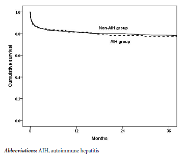 Finally, survival rates of our patients in the AIH group were acceptable, with no significant difference versus the non-AIH group, which is compatible with other studies.14