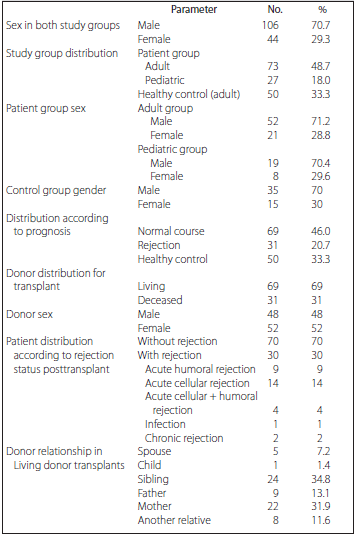 This retrospective study included 100 patients with rejection (73 adult and 27 pediatric patients) who underwent kidney transplant between 2010 and 2016 at the Ba?kent University Dr Turgut Noyan Practice and Research Hospital in Turkey. For comparison, 50 healthy controls were included, with consent obtained before study inclusion.