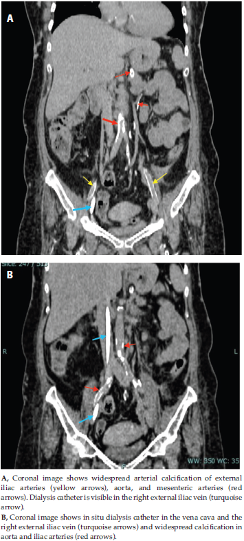 Figure 1.Computed Tomography Coronal Images of Widespread Arterial Calcification
