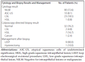 Table 2. Cytology and Colposcopic Biopsy Results and Management After Biopsy