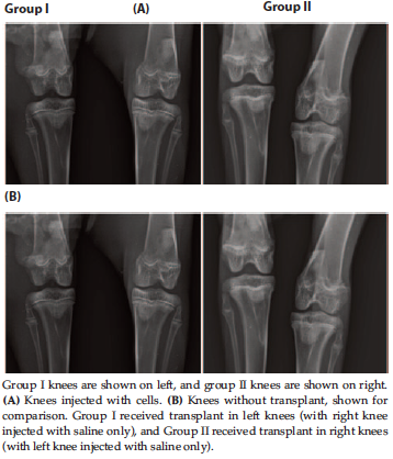 Figure 1. Radiologic Scans of Rabbit Knees With (A) and Without (B) Transplant of Human Amniotic Epithelial Cells