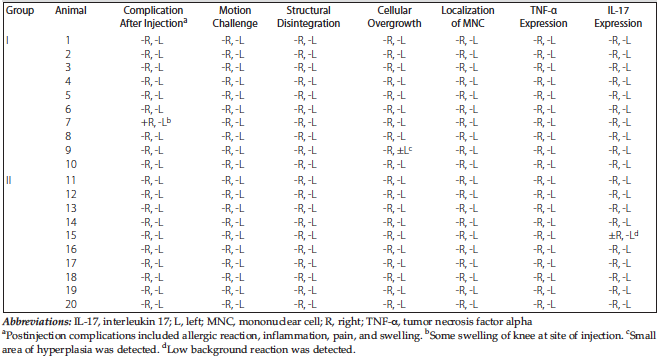Table 1. Histologic Examinations to Evaluate Immunogenicity and Tumorgenicity of Human Amniotic Epithelial Cells in Rabbit Knees