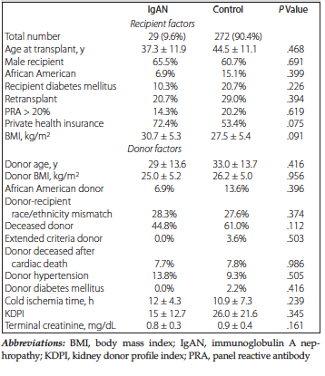 Transplant recipients with IgAN were more likely