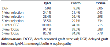 determined that IgAN status was not an independent predictor of rejection within