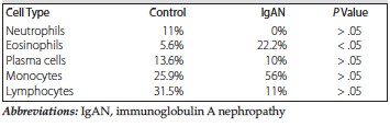 IgAN group had significantly more eosinophils on biopsy than the control group