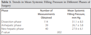 Table 3. Trends in Mean Systemic Filling Pressure in Different Phases of Surgery
