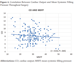 Figure 4. Correlation Between Cardiac Output and Mean Systemic Filling Pressure Throughout Surgery