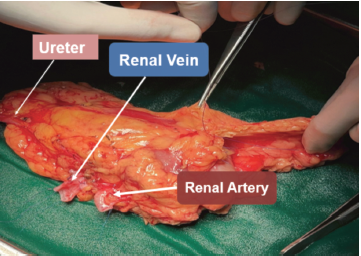 Figure 2. Graft Bench Dissection Showing a Single Renal Artery, a Single Renal Vein, and a Single Ureter