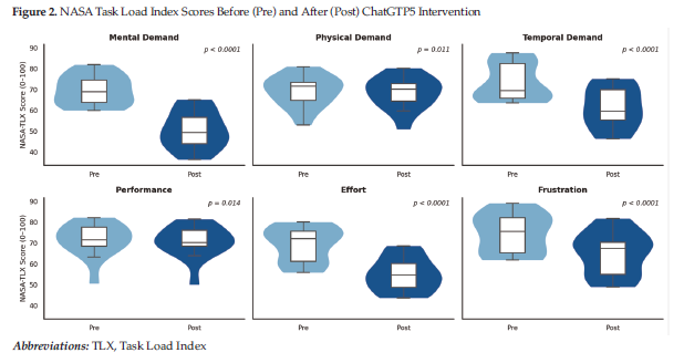 Figure 2. NASA Task Load Index Scores Before (Pre) and After (Post) ChatGTP5 Intervention