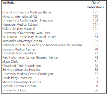 Table 2.Top Contributing Institutions According to Number of Randomized Controlled Trial Publications in the Field of Solid-Organ Transplantation