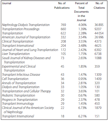 Table 3.Top Journals Publishing Randomized Controlled Trials in the Field of Solid-Organ Transplantation