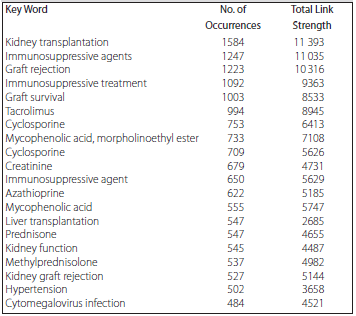 Table 4.Top 20 Most Occurring Key Words in Randomized Controlled Trial Publications in the Field of Solid-Organ Transplantation