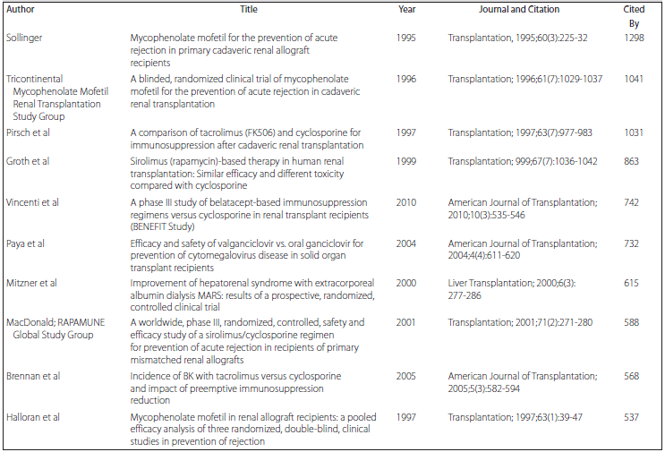 Table 5.Top 10 Cited Randomized Controlled Trials in the Field of Solid-Organ Transplantation