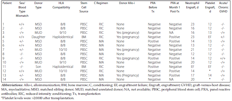 Key words : Allogeneic hematopoietic stem cell transplantation, Alloimmunization, Engraftment failure