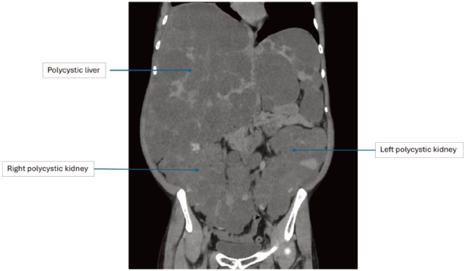 Autosomal dominant polycystic kidney disease (ADPKD) is a genetic condition that can lead to kid-ney failure. In some cases, ADPKD is accompanied by significant polycystic liver disease, for which simultaneous liver and kidney transplant (SLKT) may be indicated.1-4 In addition, nephrectomy of polycystic kidney(s) may be necessary to create a space for the kidney transplant.