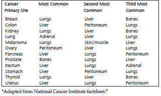 Table 3. Most Common Sites of Metastasis from Common Cancer Types*