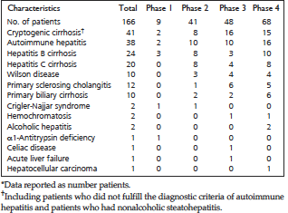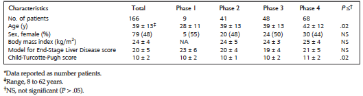 Table 1. Characteristics of Patients Who Had Liver Transplant*