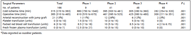 surgical techniques were modified; (3) phase 3 (2010 to 2011; 49 transplants):