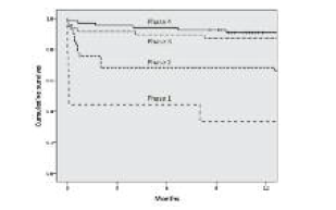 Figure 1. Kaplan-Meier Plots of Cumulative Survival of Patients Who Had Liver Transplant (differences between phases: P ≤ .001