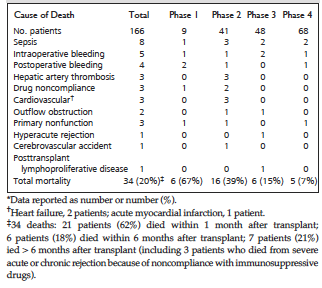 The present results document improvement in clinical outcomes including survival in this liver transplant program. The improved outcome during the 4 phases of the study may be attributed to technical advances and experience.