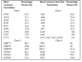 Table 1. The Most Common HLA Alleles and Anti-HLA Antibodies