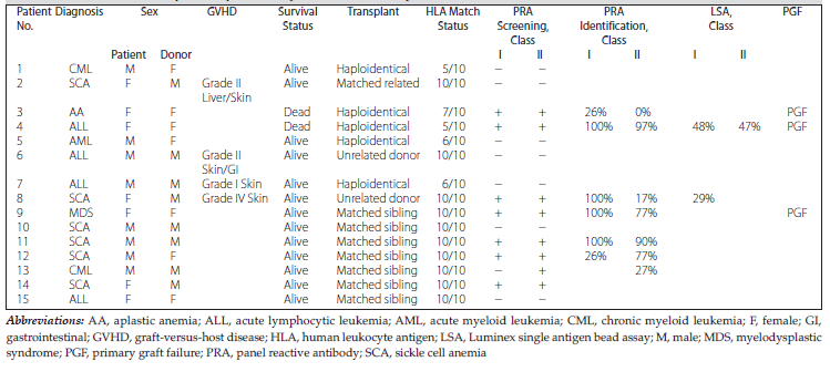Table 1. Panel Reactive Antibody Positivity in Hematopoietic Stem Cell Transplant Patients