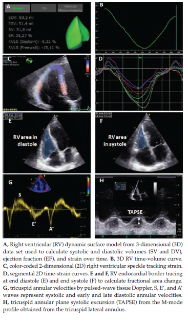 Some limitations of TAPSE and tissue Doppler velocities are well recognized. These are angle dependent and affected by tethering and translation. In addition, these parameters oversimplify the complex mechanics of the RV function to the displacement of a single segment in 1 dimension. Speckle tracking strain may be more suitable as it quantifies the deformation of the myocardium. Therefore, it is a better indicator of the intrinsic contractile function.12 However, the assessment of only longitudinal strain, ignoring circumferential and shear strains, likely deviates from a realistic quantification of the RV function.9 Similarly, the FAC, which is based on area tracings, does not take into account many parts of the RV and oversimplifies the complex RV geometry. In a previous study, Clemmensen and associates13 also found that RVEF was a better determinant of functional capacity and mean PAP than annular velocities, TAPSE, and RV free wall strain in heart transplant patients.