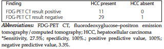 Table 1. Accuracy of FDG-PET CT Scans* for Detecting HCC in Patients Before Liver Transplant (n = 40)